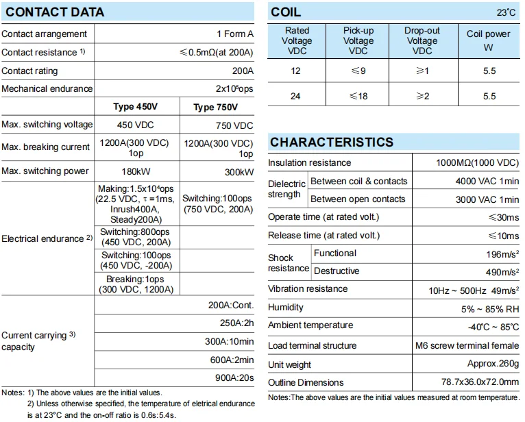 Contact rating | 200A |