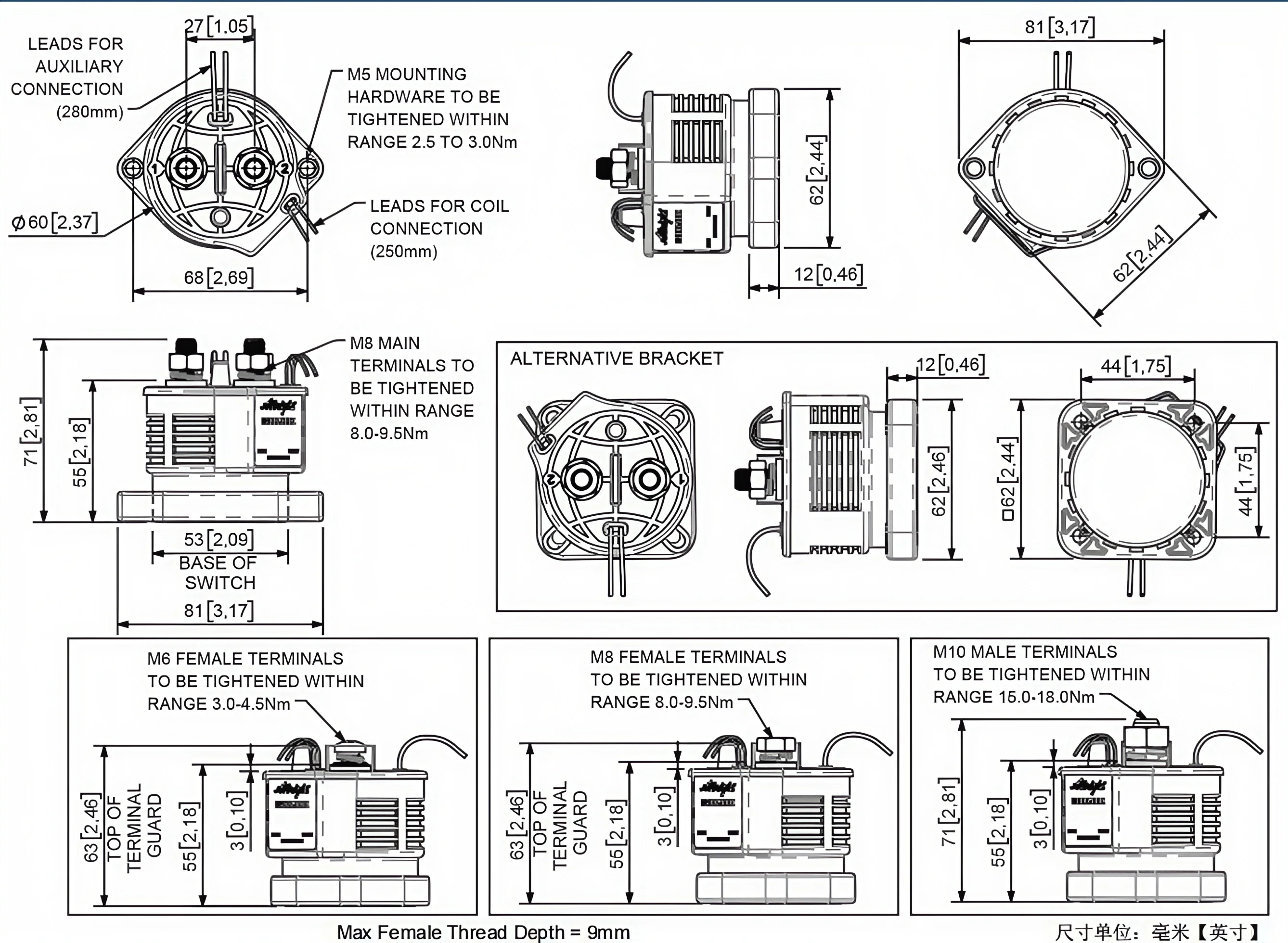 Continuous Operating Current | 250A (50mm2 or 1-1/0 AWG cables) |